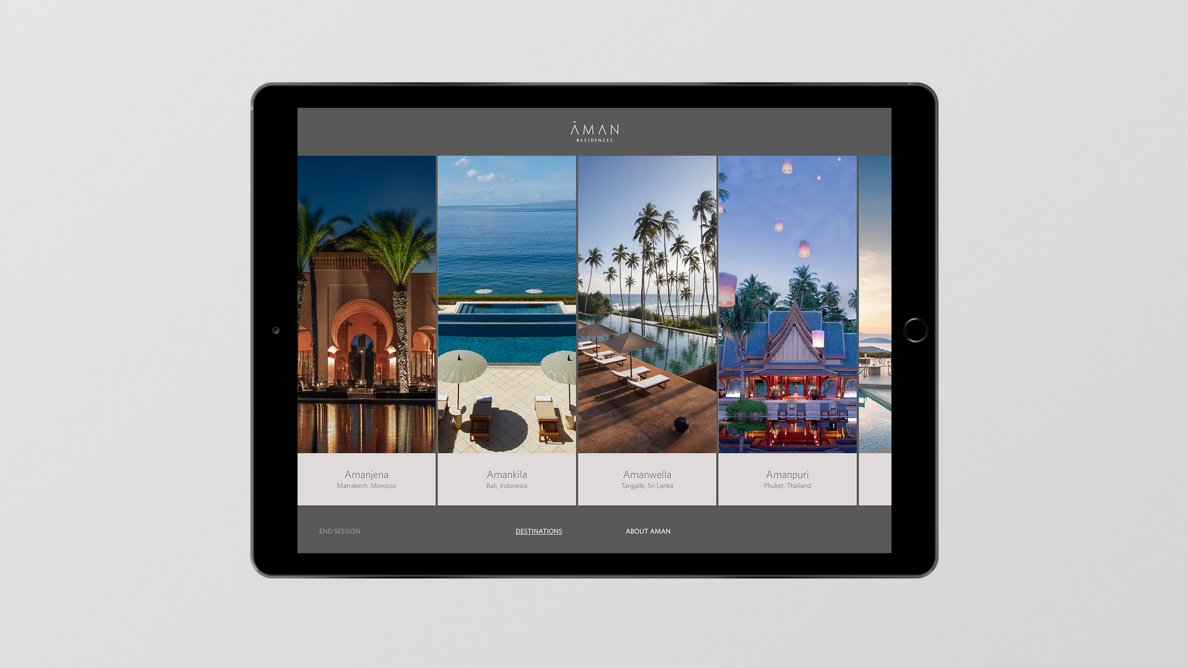 As Āman (one of the world’s premier hospitality brands) grows its residential and hospitality sales platform, an immersive, best-in-class sales experience is a requirement. And Partners has assisted with envisioning, designing, and implementing this immersive, best-in-class experience with an emphasis placed on digital media. The quality and perceived value of the tools will align with the elevated nature of the Āman brand, leaving prospects with a substantial impression. Our solution is flexible, extensible, and potentially re-locatable to other Āman branded environments, and will efficiently power content associated with future web based tools and/or directly integrated with existing Āman platforms.